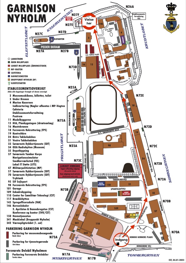 Nyholm er militært område, og man må derfor ikke køre ind med bil eller cykel på området.